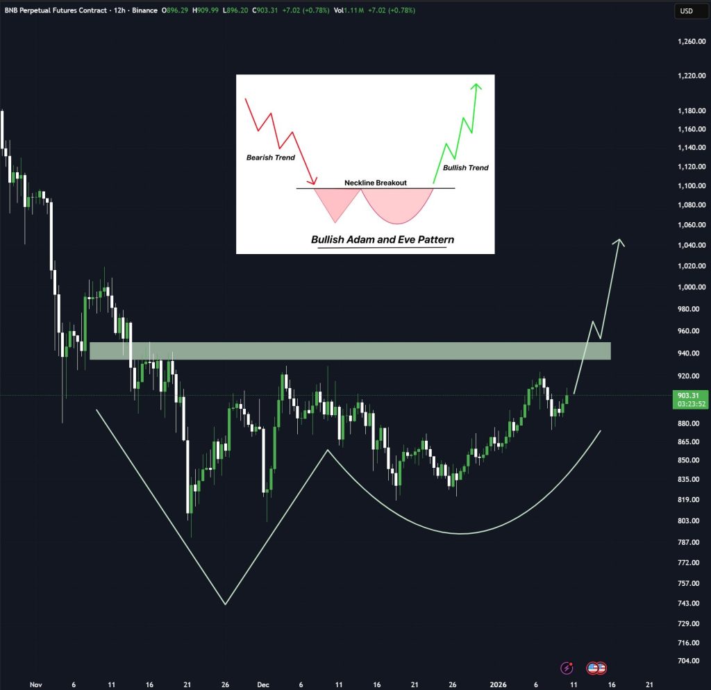 If this structure resolves higher, the BNB price prediction from this setup points toward a clean break above $930, followed by a move into the $960–$980 area. That’s the kind of follow-through traders usually expect once this pattern breaks.