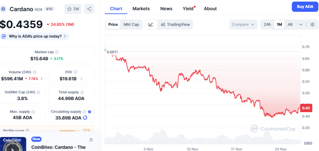 Currently, ADA trades around $0.43. Is it the best crypto to buy now at current levels? Matthew Plourde believes the next bottom will be around $0.25 and $0.36. However, crypto analysts like Ali, who can be called delusional bulls, are optimistic about a rebound in the Cardano price.