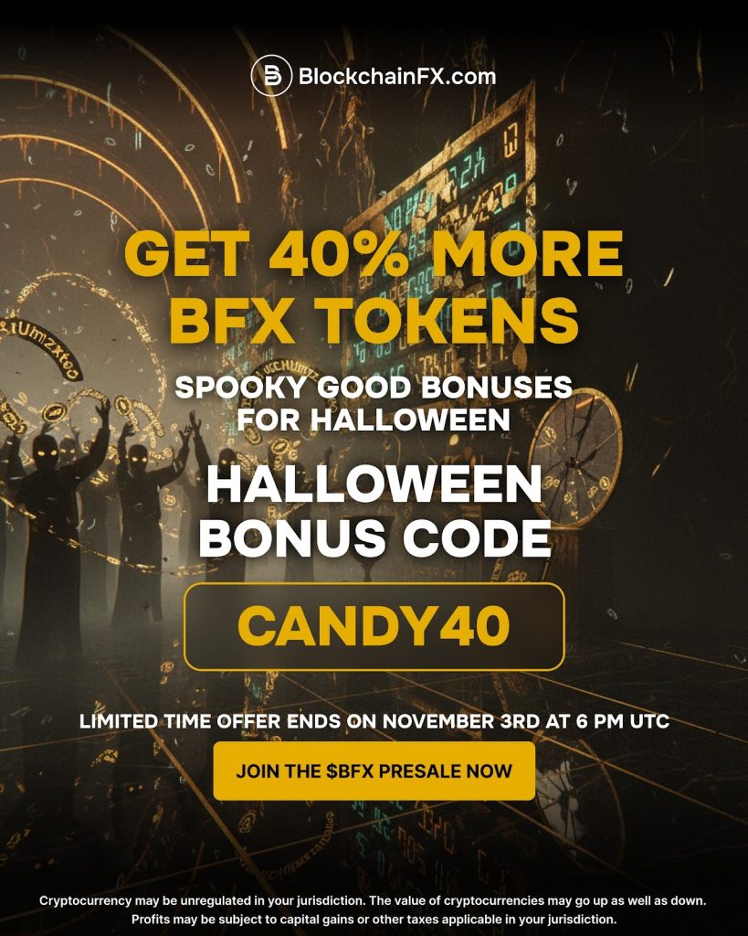Adding urgency is the Halloween promotion — a 40% bonus on all $BFX purchases for investors using the CANDY40 code before 3rd November, 6pm UTC. Once this bonus window closes, buyers miss out on an allocation that could significantly amplify their returns once the token lists publicly. For many, this time-sensitive opportunity marks BlockchainFX as one of the best presales to buy now.