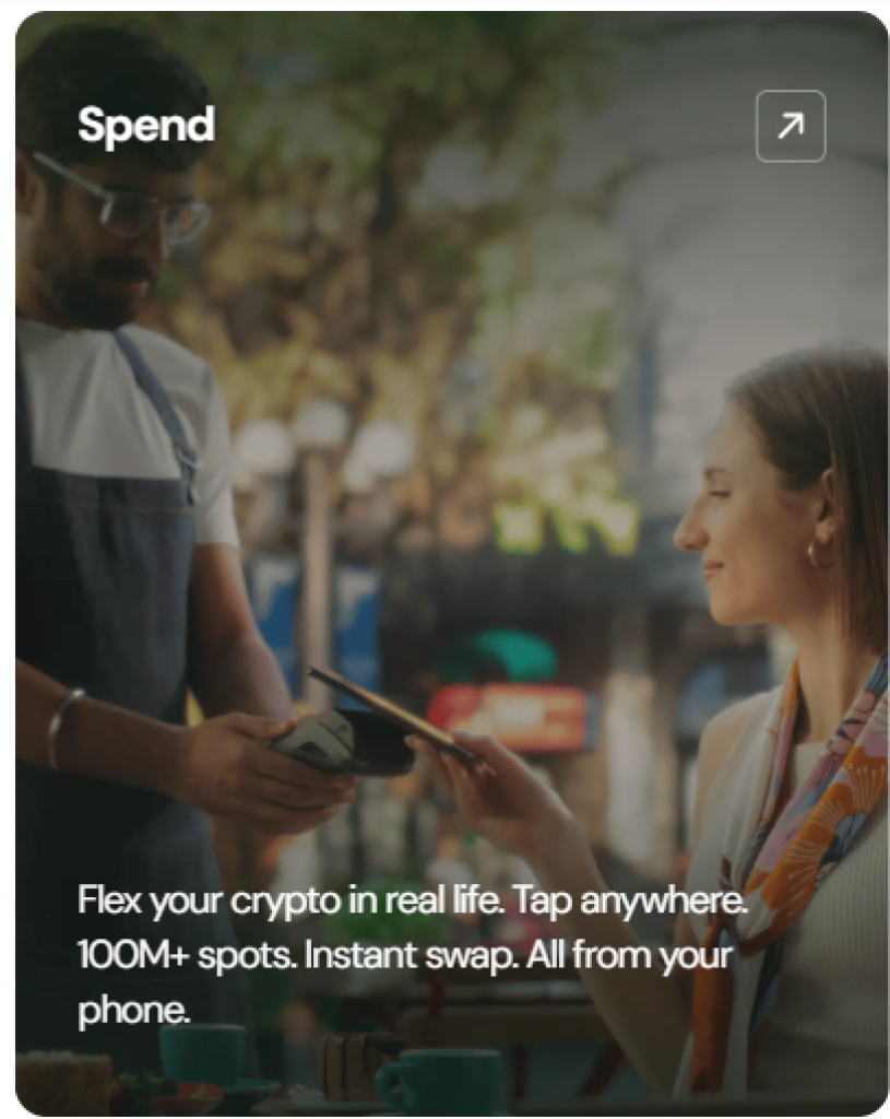 It combines the reliability of traditional banking with the flexibility of cryptocurrency. Hence, its core offerings include instant and borderless transactions. Its virtual and physical cards, linked to both crypto and fiat, are co-branded with Visa for global acceptance and supported by Apple Pay and Google Pay.