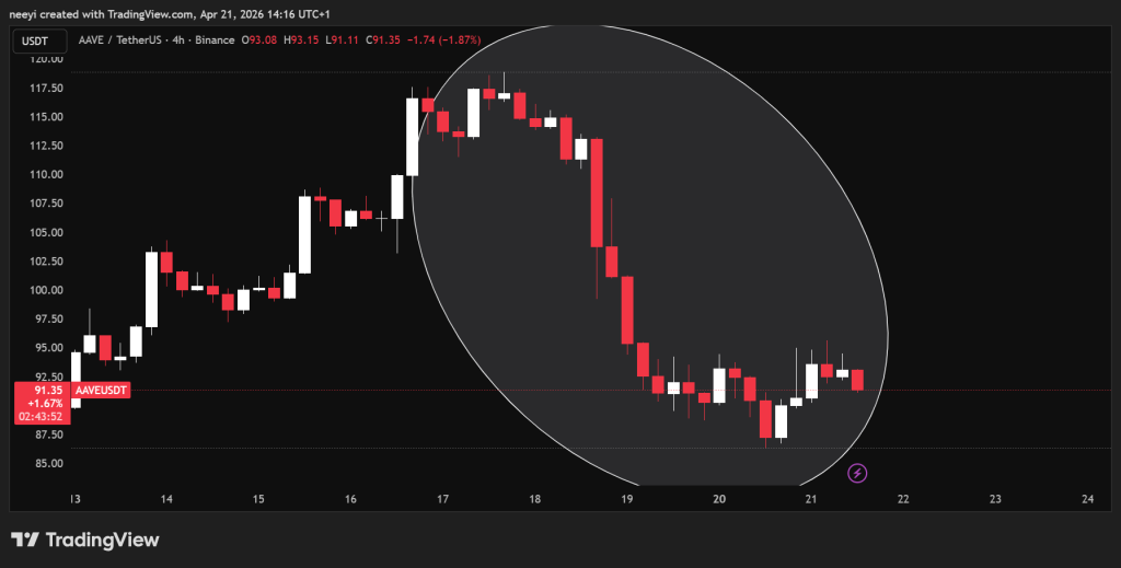 A look at the AAVE price action shows a market reacting to more than just a single exploit. The drop followed a mix of internal exits, technical setbacks, and a major external attack that affected liquidity across the protocol.