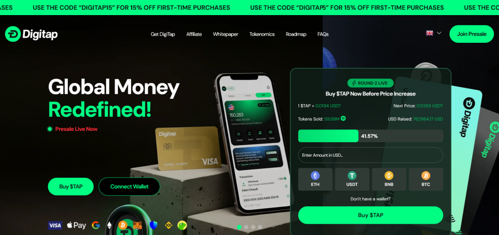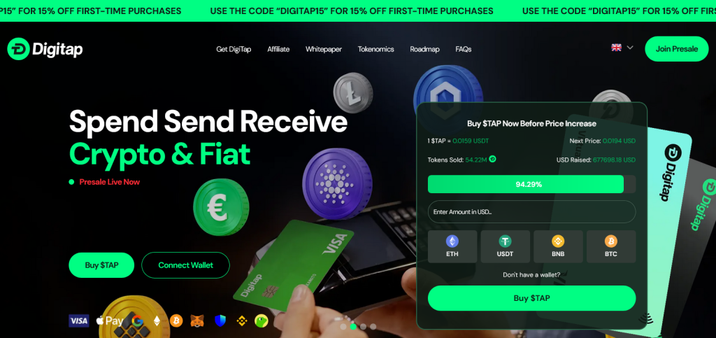 On that note, Digitap ($TAP), an omni-bank ecosystem, stands out as a hedge in its presale stage. Its platform integrates crypto and fiat seamlessly for daily transactions. Its early-stage performance means that investors consider it a next-generation hedge against volatility.