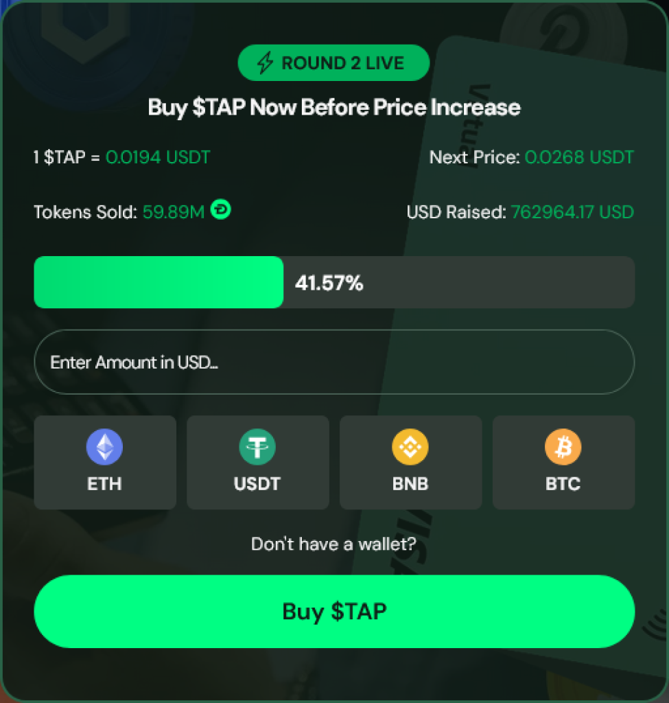 So far, $TAP presale’s performance has been phenomenal, rapidly surpassing several milestones. The token is highly popular among investors seeking haven assets in the crypto space. Its ecosystem enables users to change between fiat and crypto seamlessly in their daily transactions.
