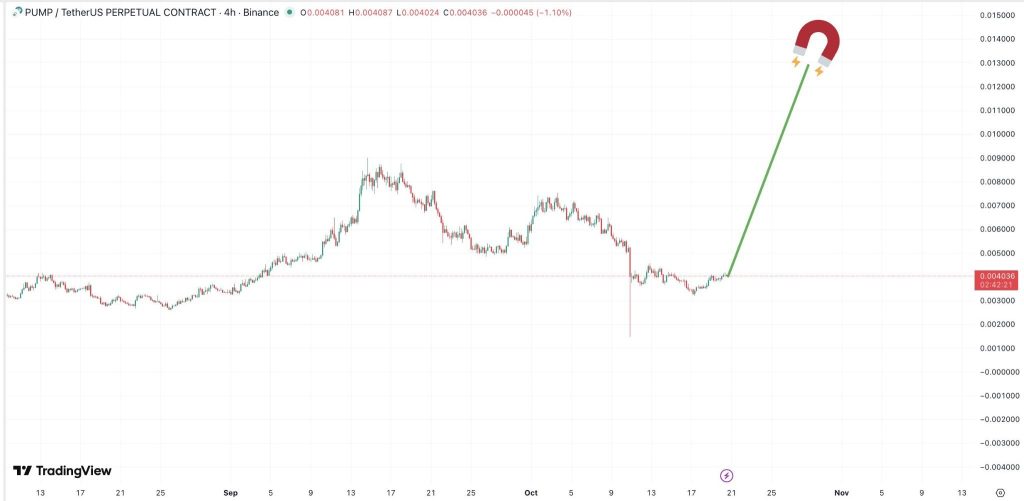Looking at the 4-hour chart, PUMP price seems to be setting up for a strong move. After bottoming near $0.0038, the price has started to rise again, forming a clean recovery base.
