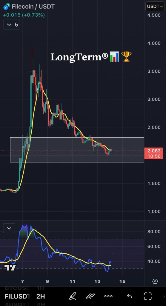 The long-term weekly chart actually supports the idea that FIL is sitting in an important region. The FIL price has been grinding lower for a long time, but each dip into the $1.80 to $2.10 zone has attracted steady buying.