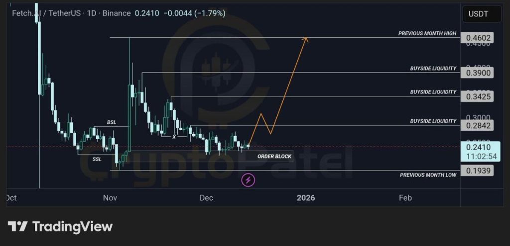 After weeks of messy, sideways-to-down action, the FET price is reacting from a daily order block that has held before. That alone makes this spot interesting.
