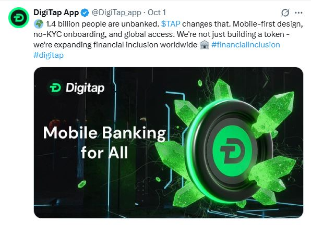 The value of $TAP is directly tied to its real-world use. Every payment, transfer, and staking transaction helps strengthen the ecosystem and support the token’s price. Digitap targets massive markets, including the 1.4 billion unbanked people, the cross-border transfer sector worth $860 billion, and the millions of younger generations who prefer to manage their finances via mobile apps.