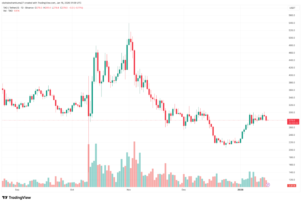 Trading volume has dipped by 17% in the last 24 hours, suggesting a cooling of interest. The price prediction for TAO forecasts a 115% rise by January 2027, reaching $612.22. Still, investors seeking life-changing wealth should consider DeepSnitch AI as it offers a massive upside.