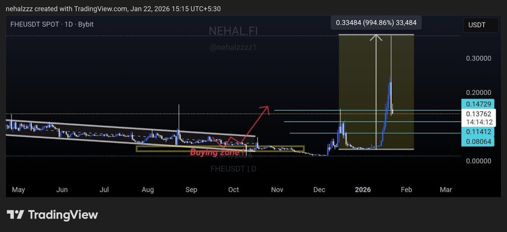 While the Mind Network has dropped to $0.14 as of January 24, it remains one of the top gainers, up 50% on the weekly chart. Nehal notes that the retracement would not last and expects a rebound to $0.33.