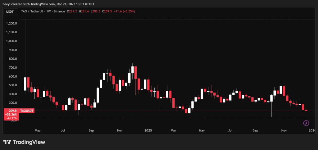 TAO now trades several hundred dollars below its previous peak. That gap matters. Reduced supply combined with expanding AI use cases creates a setup where scarcity and demand could align. Bear markets often price assets for pessimism rather than potential, which is why TAO stands out in this phase.