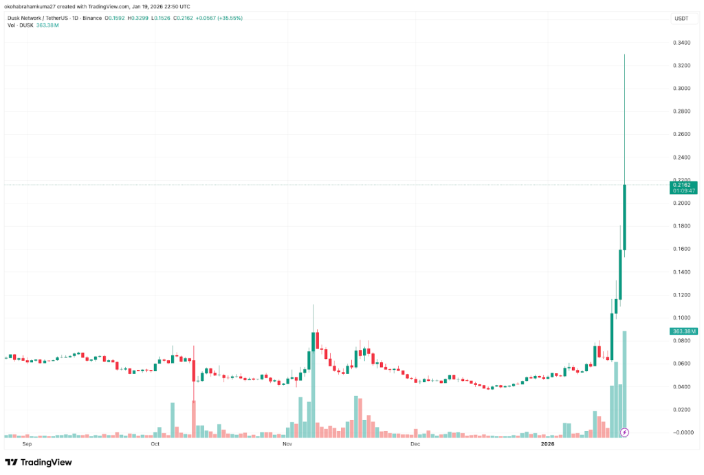 Dusk is one of the best altcoins to buy this week, recording an incredible 250% price increase in the last seven days as of January 19th. This rally was due to Huobi HTX launching DUSK/USDT perpetual contracts with 20x leverage, driving speculative interest.