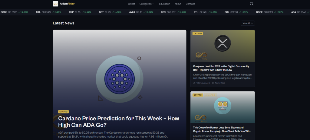 What sets AxiomFinity apart is its emphasis on speed and relevance. The platform prioritizes timely coverage of breaking developments (particularly in areas like regulation, institutional activity, and market-moving news) which it a strong resource for readers looking to stay ahead of short-term trends. Its content strategy blends real-time updates with concise analysis, allowing readers to quickly grasp what matters and why.