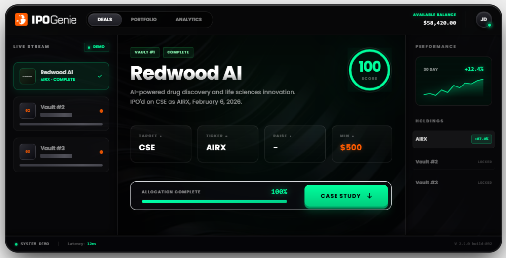 Before Redwood AI Corp. (CSE: AIRX Case Study) listed on February 6, 2026, IPO Genie’s AI system publicly flagged it as a high-potential opportunity. The prediction was shared with the community before the listing, not after.
