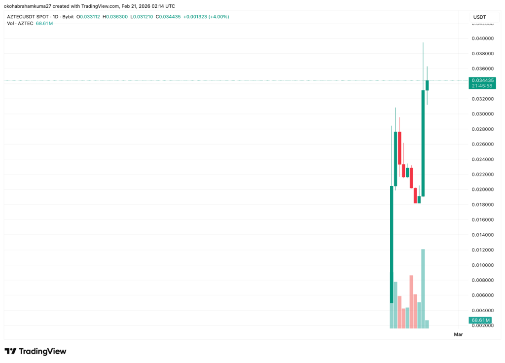 While evaluating high-potential presales, it is vital to monitor altcoins like Aztec ($AZTEC). The token is experiencing a massive surge, recording a price increase of 22% as of February 20th. This performance allows Aztec to comfortably outpace the crypto market.