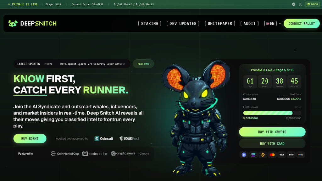 Furthermore, the recent decision to slightly delay launch quietly benefits holders by extending a closed access phase where early buyers gain learning, access, and timing advantages that can’t be replicated later. That asymmetry is why DeepSnitch AI is increasingly viewed as the best crypto presale heading into launch.