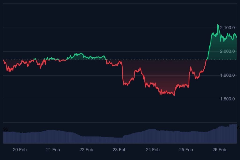 ETH crosses $2k despite huge sell-off records 5% weekly surge