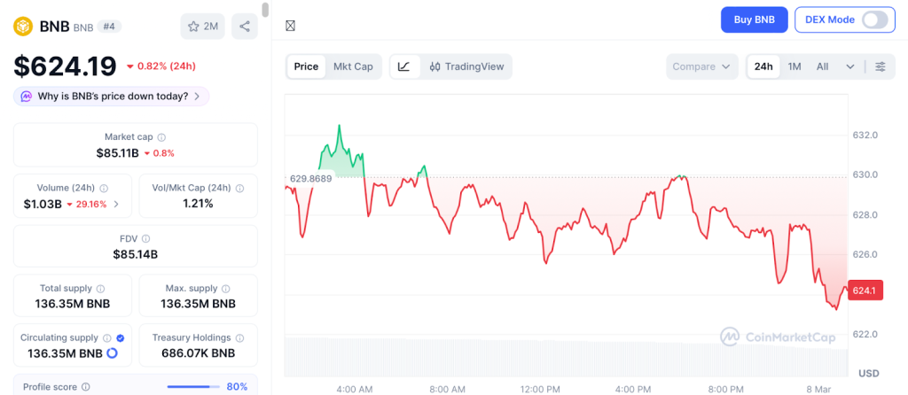 Binance Coin trades near $624 according to CoinMarketCap and remains the backbone of the Binance ecosystem, but BNB needs the entire exchange to maintain dominance for meaningful appreciation.