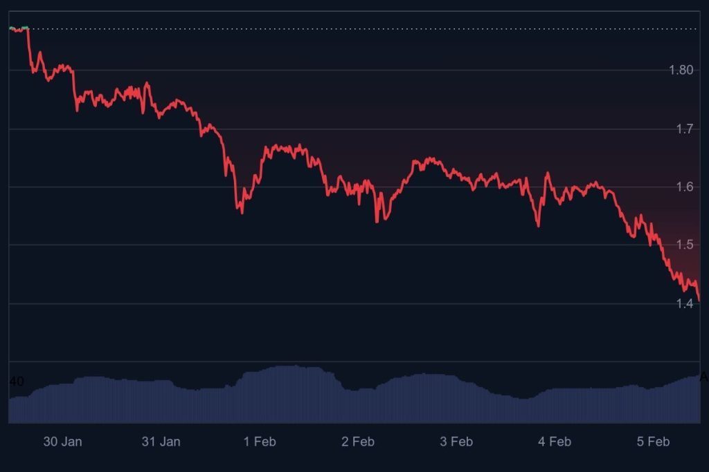 Despite a rough week for XRP, some parts of the community aren’t giving up. Between January 30 and February 5, XRP’s price dipped 25%, moving from $1.87 to $1.40 amid the bearish sentiment across major cryptos.