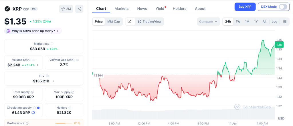 XRP Price at $1.35 as CLARITY Act Targets Late April Markup