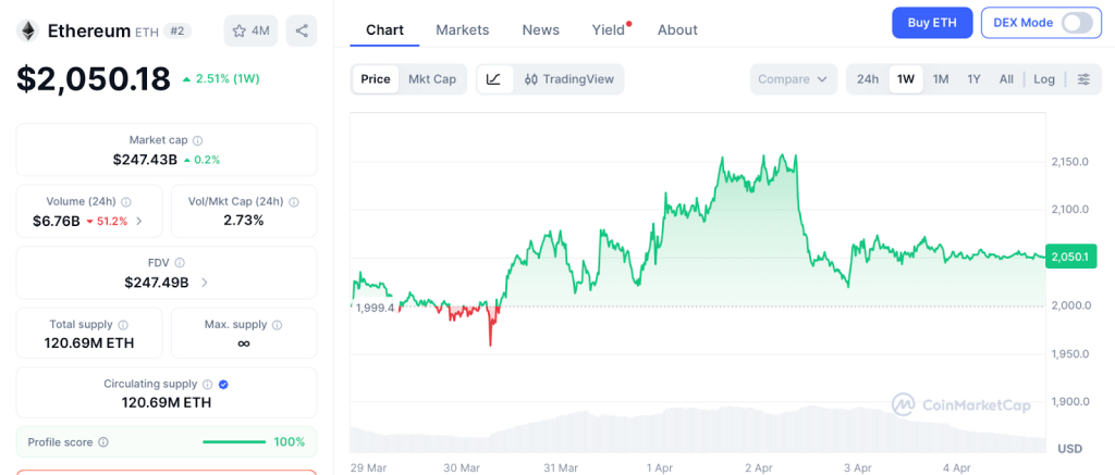 Ethereum sat near $2,050 on April 4, according to CoinMarketCap, hovering roughly 58% below its August 2025 peak. The Drift hack compounded existing pressure after stolen funds were dumped onto the Ethereum network, and the Fear and Greed Index recently sank to 12, its lowest sustained reading since the FTX collapse.