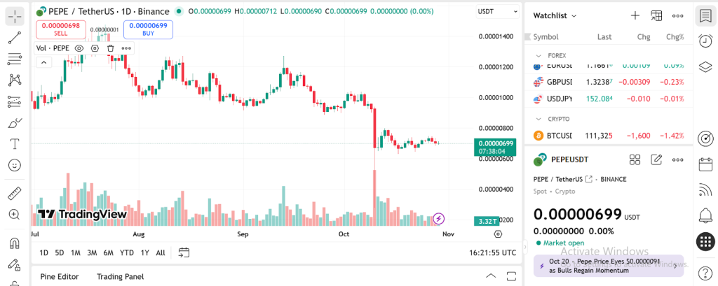 If this support area holds and volume increases, PEPE could target previous resistance levels. However, if support breaks, traders warn of a wider range reset before any next leg higher.