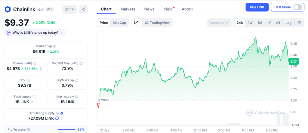 Chainlink (LINK) Price at $9.37 as Aave V4 Oracle Deal Locks In Fee Revenue