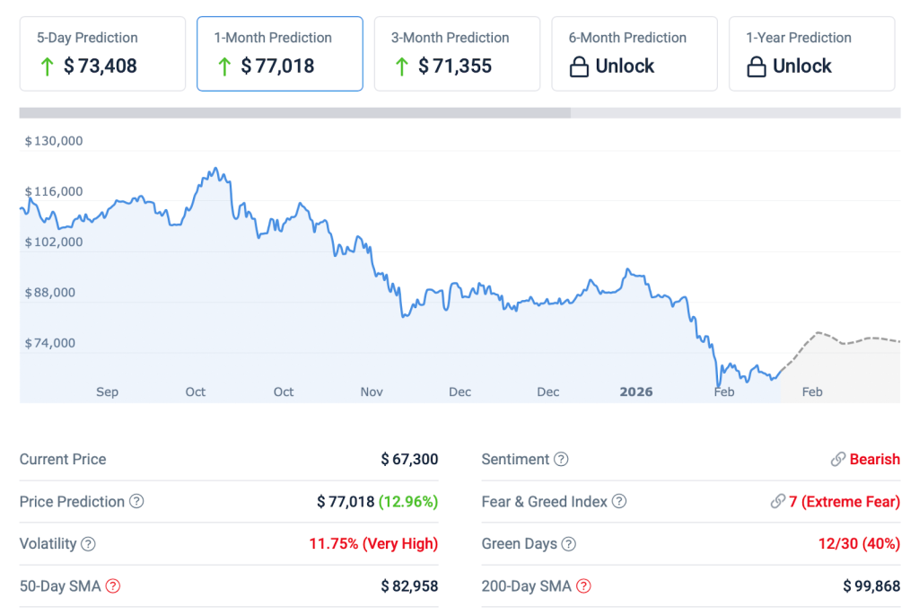 Despite some rather grim Bitcoin price news recently, the token’s bull case hasn’t disappeared just yet. BTC was at around $67,780 on February 20, with algorithmic forecasts pointing toward roughly $77,000 within a month and as high as $93,000 by year-end.