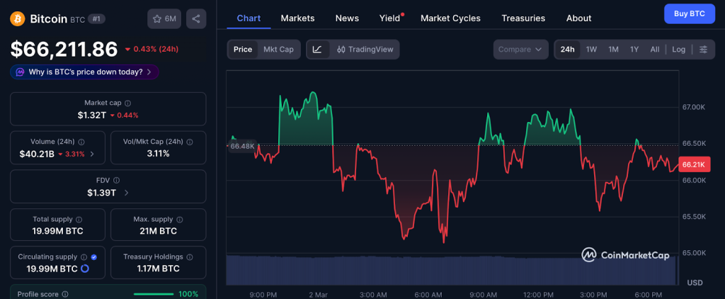 The king crypto dropped over 3% this week to trade near $66,2111 according to Coinmarketcap data after the price faced rejection around $69,300.