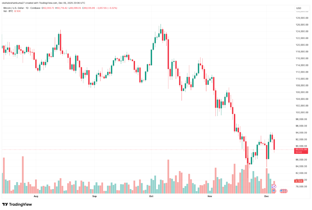 The Bitcoin price prediction reflects the current risk-off environment. Bitcoin has declined 0.60% within the first week of December, underperforming the market. The Fear & Greed Index is at 28, and the technical sentiment is bearish.