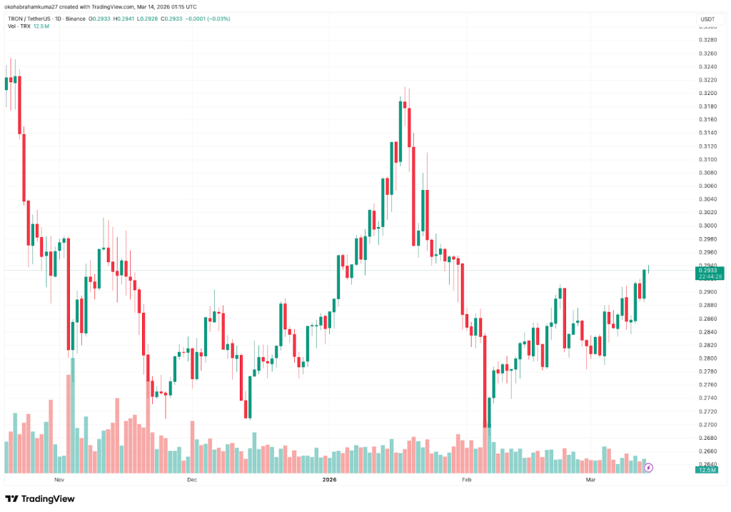 Currently trading around $0.2898 as of March 13th, the Tron coin is filled with an extreme fear sentiment. At the same time, it has an incredibly low volatility of barely one percent. Tokens like this are completely paralyzed by their own massive size.