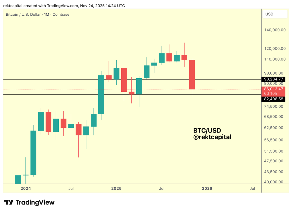 After experiencing days of high volatility and drops of almost 20% in the month, touching near $80,000, Bitcoin managed a good recovery, surpassing $87,200 on November 25th. While traders and investors remain skeptical about what the next move might be, the monthly chart may indicate something interesting.