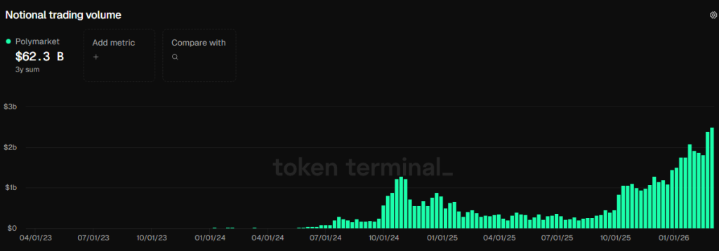 During the week ending on March 9, notional trading volume on Polymarket and Kalshi hit new weekly records. Polymarket generated $2.49B while Kalshi snagged the lead spot with $2.85B.