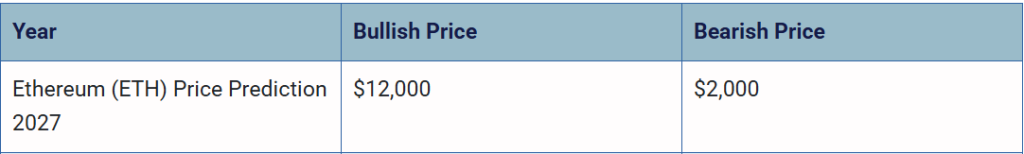 The Ethereum price prediction, on the other hand, shows that Ethereum could reach $12,000 by the end of 2027, but only if bullish price catalysts emerge. However, the crypto might trade near $2,000 if bearish pressure persists.
