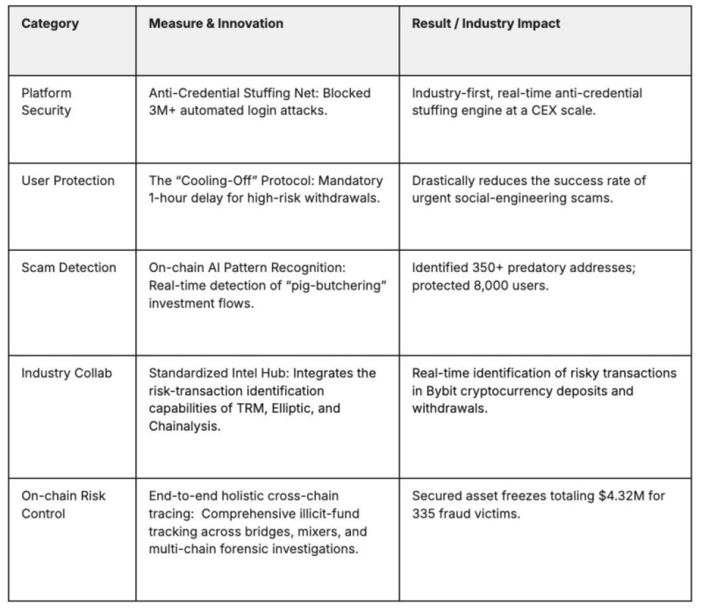 - AI-Driven Detection in Q4: Bybit’s proprietary AI algorithms identified 350 high-risk investment fraud addresses via on-chain data, shielding 8,000 users from potential withdrawal losses.