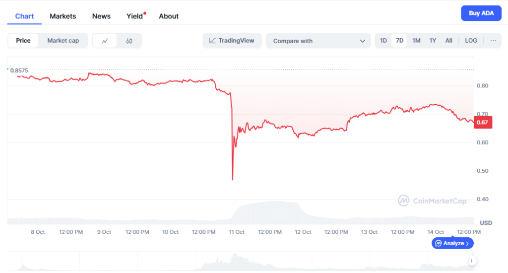 In a bearish scenario, he noted that the price of Cardano could drop to $0.45. On the flip side, a rally could push ADA to $1.18, $1.87, and $3.10. Another market analyst, Mr Brownstone, predicts that the Cardano price might soar to $1.33.