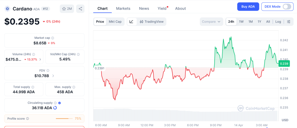 Cardano (ADA) Price at $0.239 as Cardano News Shifts to Treasury Spending