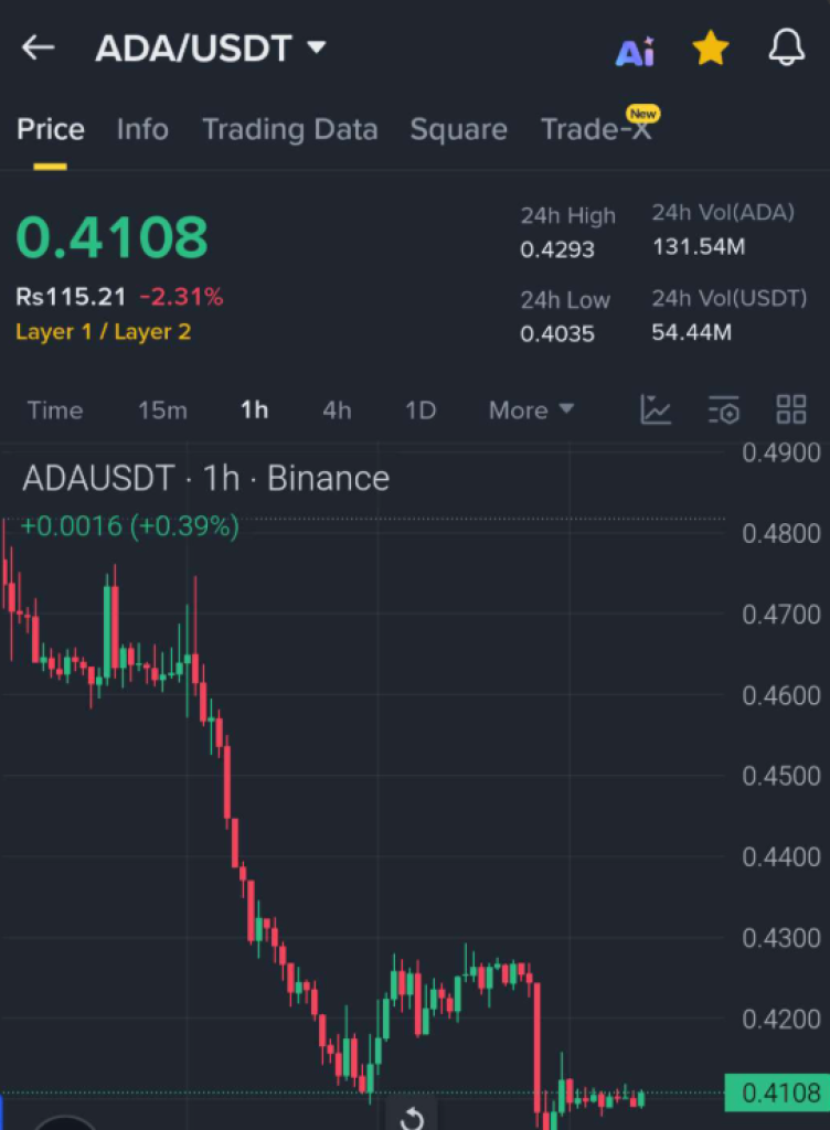 Holding above 0.405–0.41 is considered essential for ADA to avoid deeper pressure, while reactions near resistance may decide whether Cardano continues sideways or attempts a recovery.