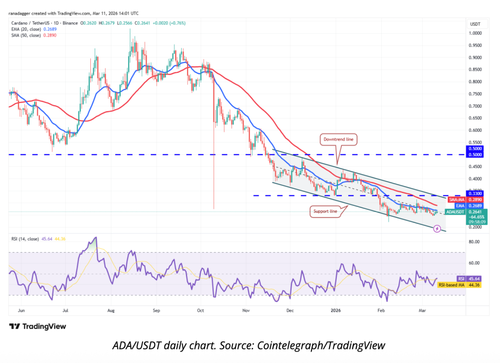 ADA has been trading around $0.26 as of mid-March, weighed down after whales offloaded above 130 million tokens over the past week. The sell-off tracked broader macro caution as rising oil prices dampened near-term Fed rate cut expectations.