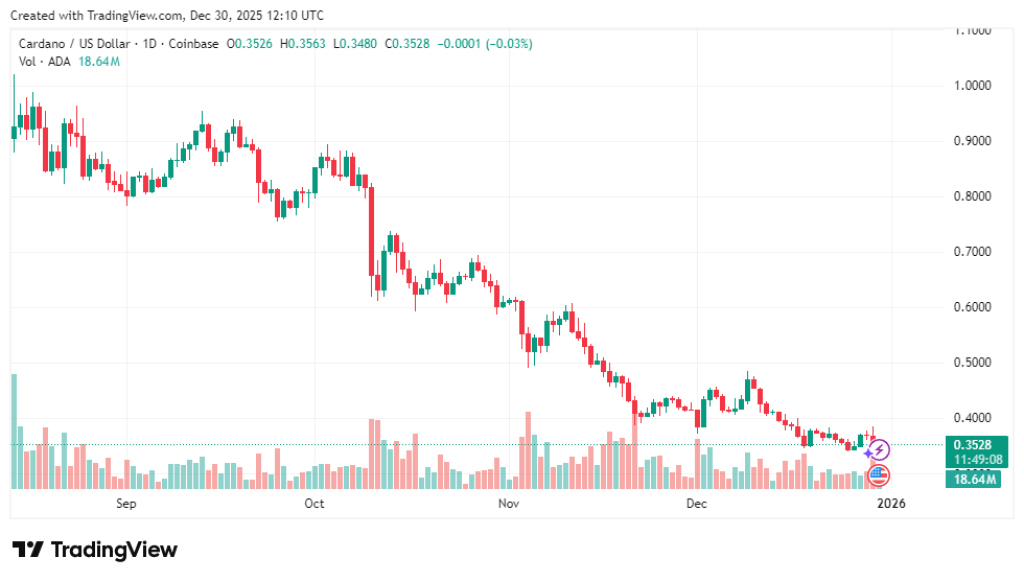 For long term holders, the current Cardano price prediction offers a genuine technical reason for optimism. As of December 30, ADA is trading at $0.38, having successfully retested its critical support zone near $0.37. Technical analysts are closely watching a “diamond bottom” formation on the weekly chart, a pattern that historically signals the end of a long-term downtrend and the start of a parabolic reversal.