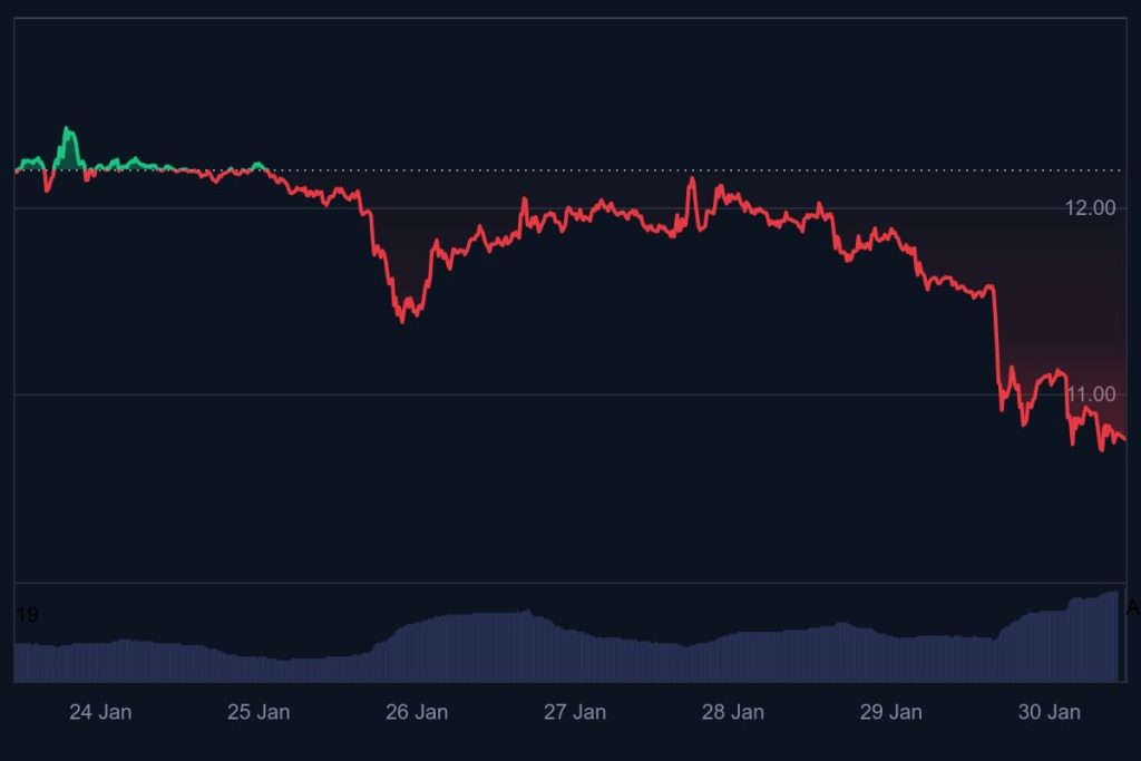 Chainlink’s native token hasn’t been immune to the broader market drop this week. After trading at $12.20 on January 24, LINK slid to $10.76 by January 30, representing a 12% drop in six days.
