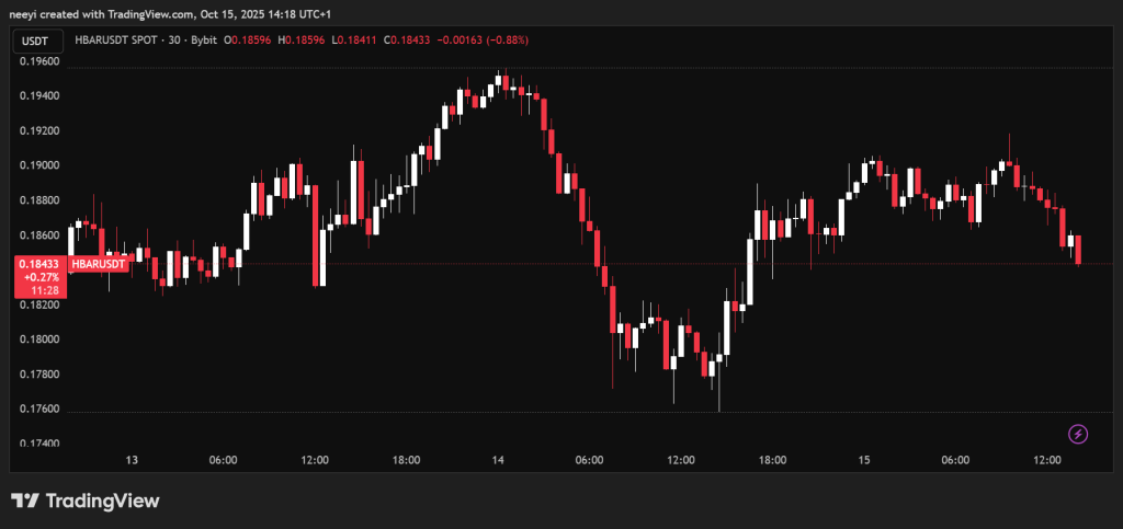 Hedera has earned its reputation as one of the most reliable blockchains for enterprise use. It is known for speed, security, and low transaction costs, which make it a favorite among businesses and developers. At the moment, HBAR trades around $0.1888, showing slow but consistent progress.