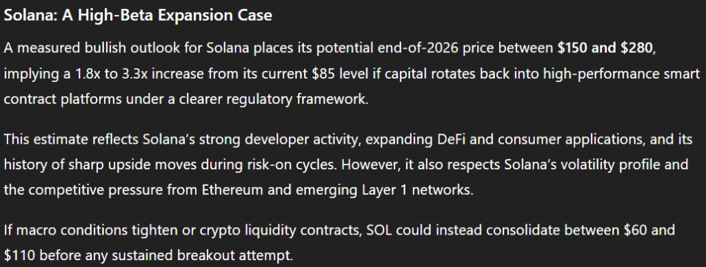 In a scenario where the CLARITY Act reduces institutional hesitation and the broader market enters recovery mode, Solana could trade in the $150 to $280 range by the end of 2026.