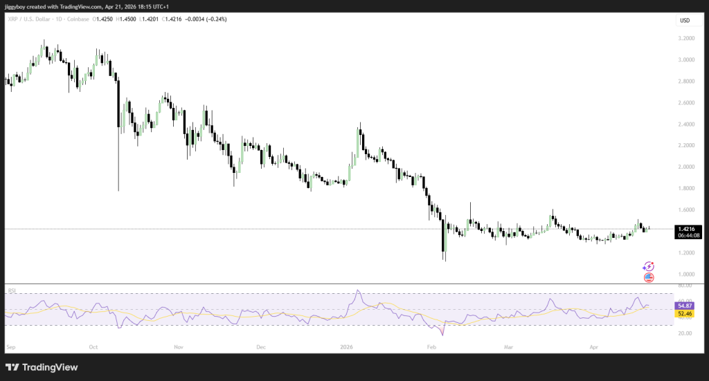 Ripple’s XRP is selling at $1.42 after dropping from levels above $3.20 in December 2025. On the chart, the XRP price will remain bearish until the year 2026 with the current price hanging around $1.40 support.