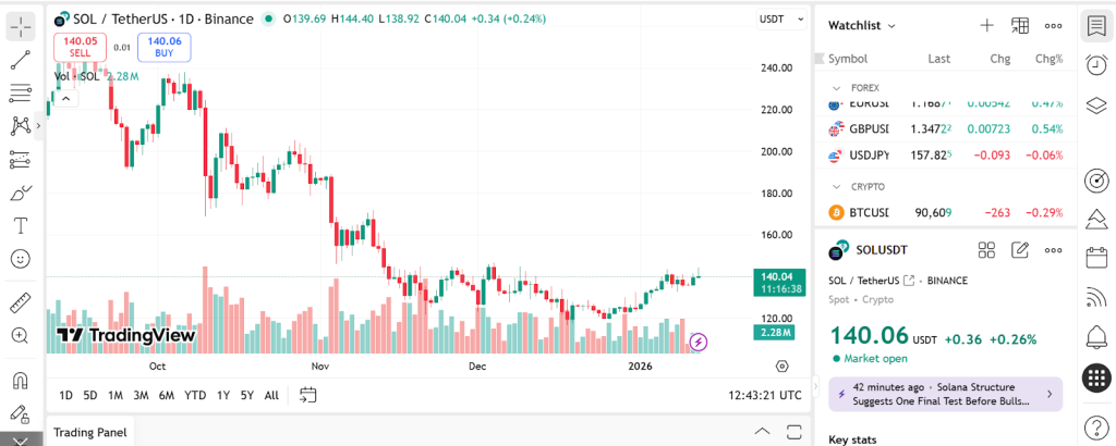Solana trades at $140, backed by a market cap of around $79 billion and daily trading volume above $5 billion. Spot Solana ETFs have also recorded net inflows of nearly $14 million, which keeps buyers engaged even after earlier volatility.