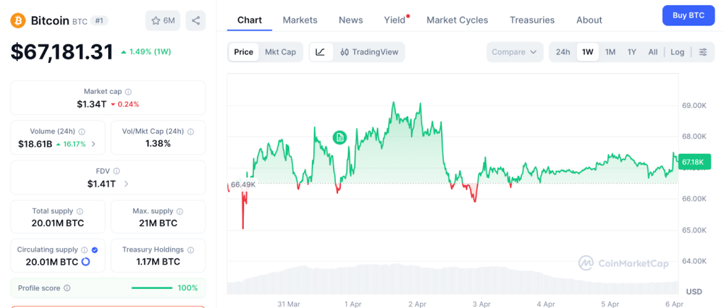 From $67,181, $100,000 delivers 49% over months. BTC belongs among the 3 best cryptos to buy in april 2026 for preservation, but not for the kind of return that one presale listing compresses into a single event.