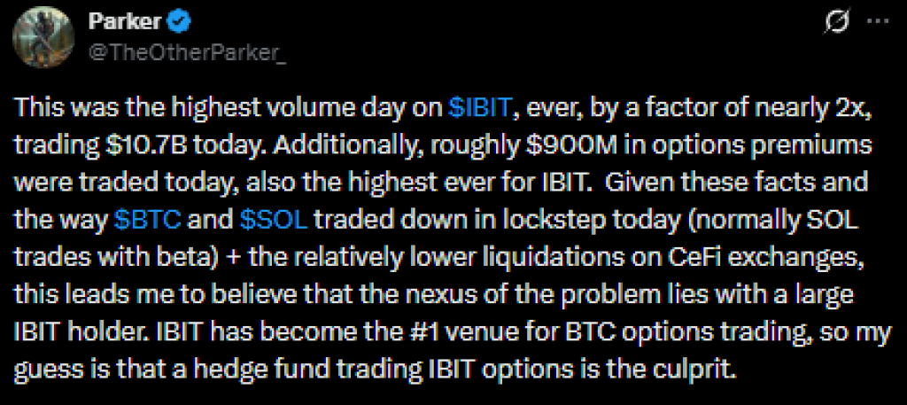 As BTC continued cascading down, the leveraged option blew up, which led to mass liquidations of IBIT shares, amplifying the crypto crash.
