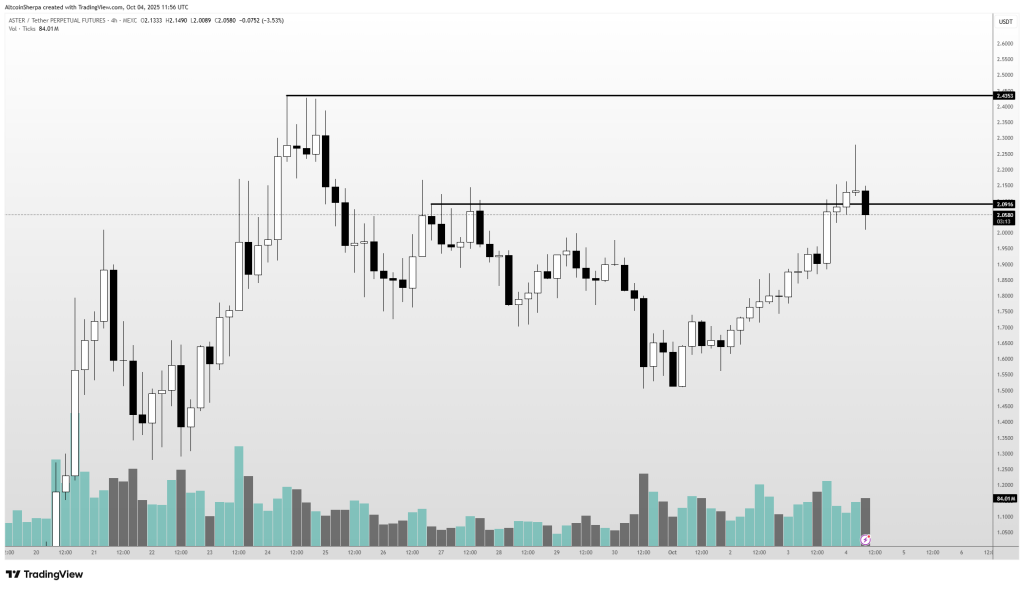 For now, all eyes are on the $2.00-$2.10 zone. If ASTER price can reclaim that area and push higher, traders could start looking toward the $2.45 range next. But if it fails to hold, the pullback toward $1.90 might offer the better opportunity Sherpa talked about.
