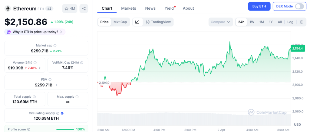 The ethereum price prediction gained data this week that is difficult to dismiss. On April 1, Ethereum spot ETFs pulled in $31.17 million in net inflows, reversing an outflow trend at a moment when most expected continued weakness according to Coinpedia