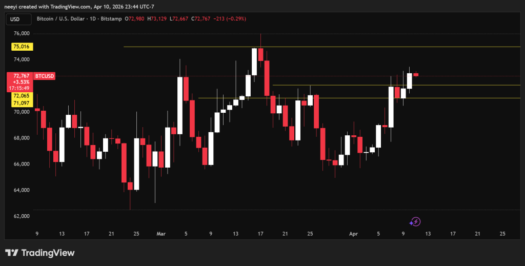 Based on this structure, the expected trading range for today remains between $71,000 and $75,000.