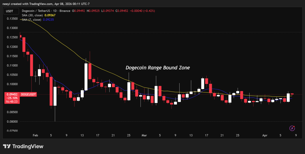 Today’s most likely path looks like a chop between $0.092 and $0.098 if no sudden meme-related catalyst appears. A firm move above $0.100 would strengthen the bullish case. Repeated rejection near $0.095 to $0.098 could drag DOGE price back toward the low $0.09 area.